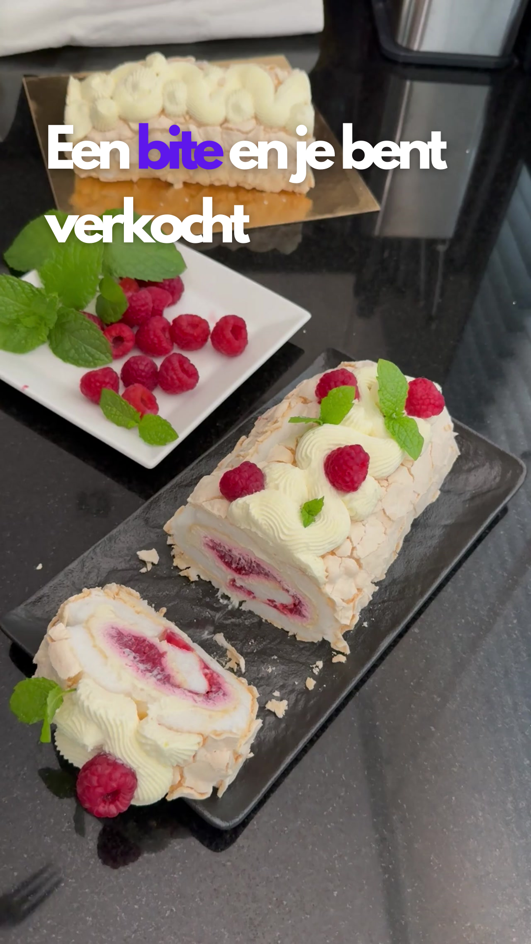 Een luchtig dessert met een knapperige buitenkant en een romige vulling. Gemaakt van eiwitten, suiker en maïzena, met een zachte vulling van Philadelphia roomkaas, slagroom en vers fruit (aardbei, mango of framboos). Een lichte, verfijnde smaak voor echte zoetekauwen!